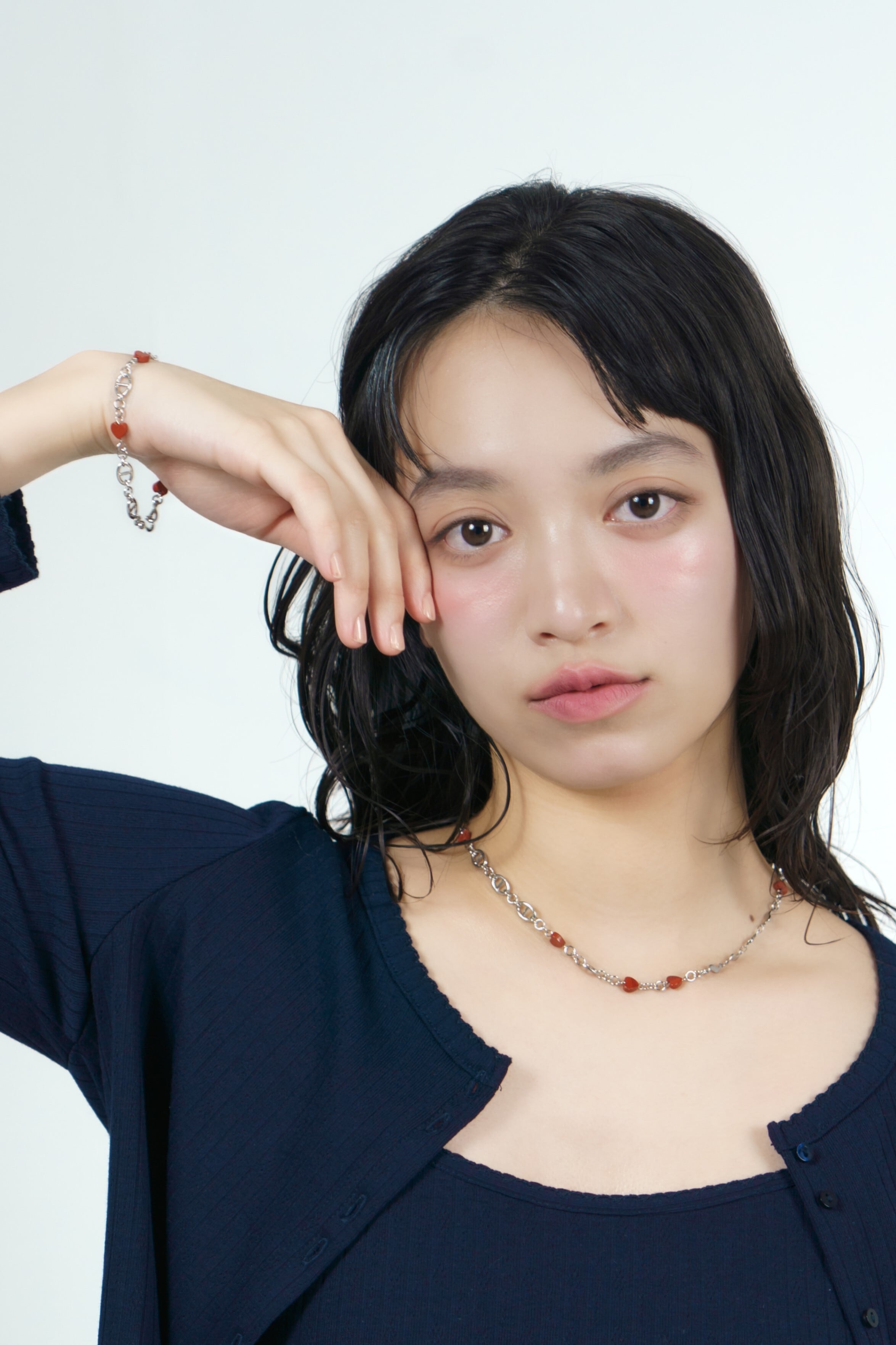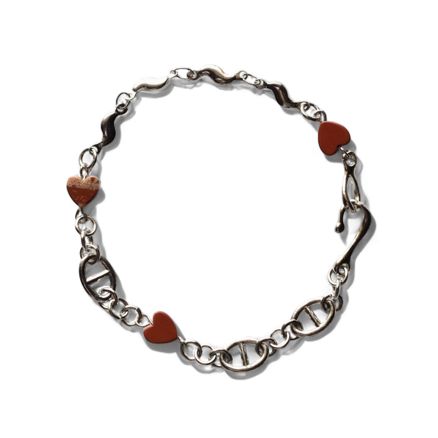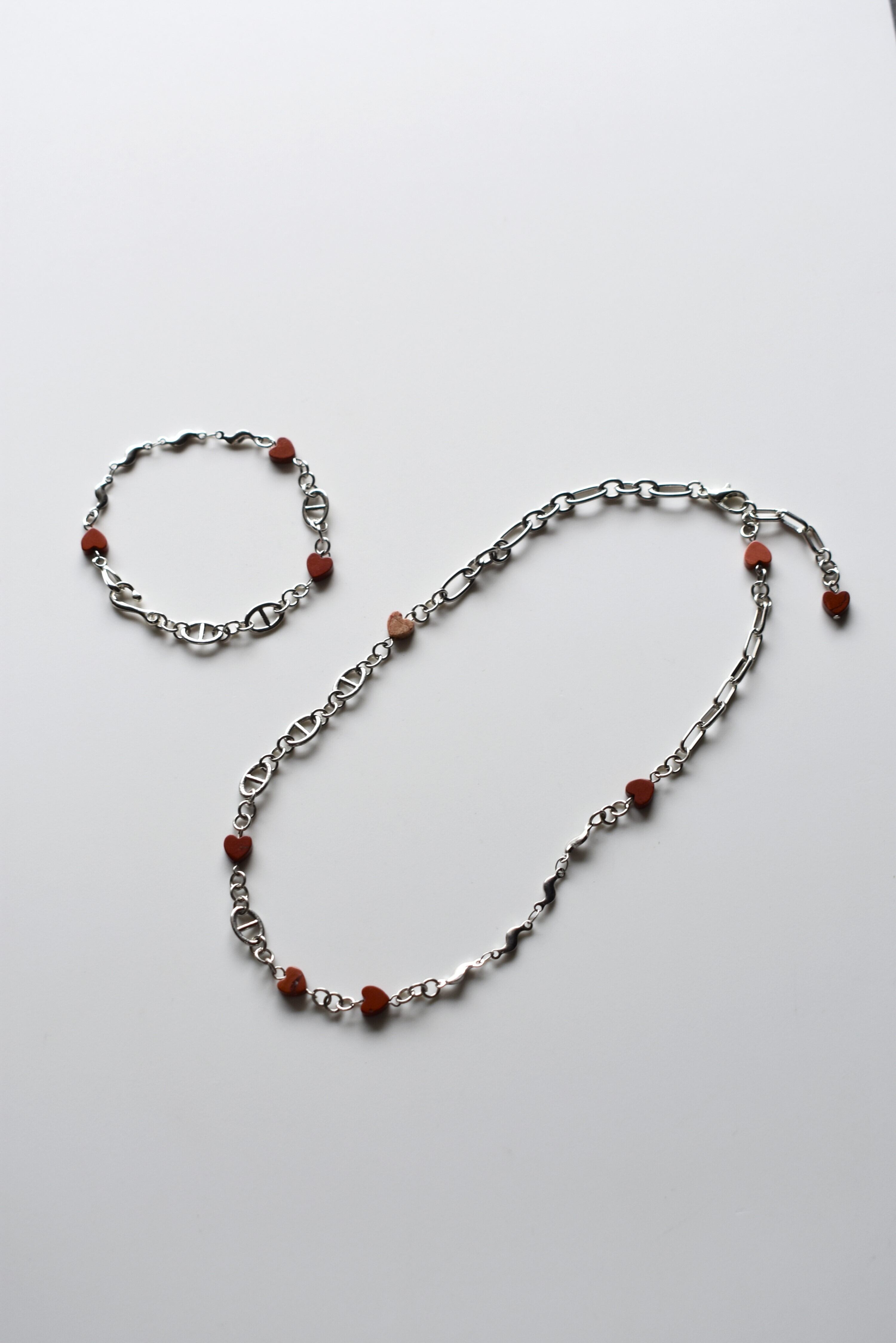 天然石(レッドジャスパー)、ステンレスチェーン、合金、真鍮