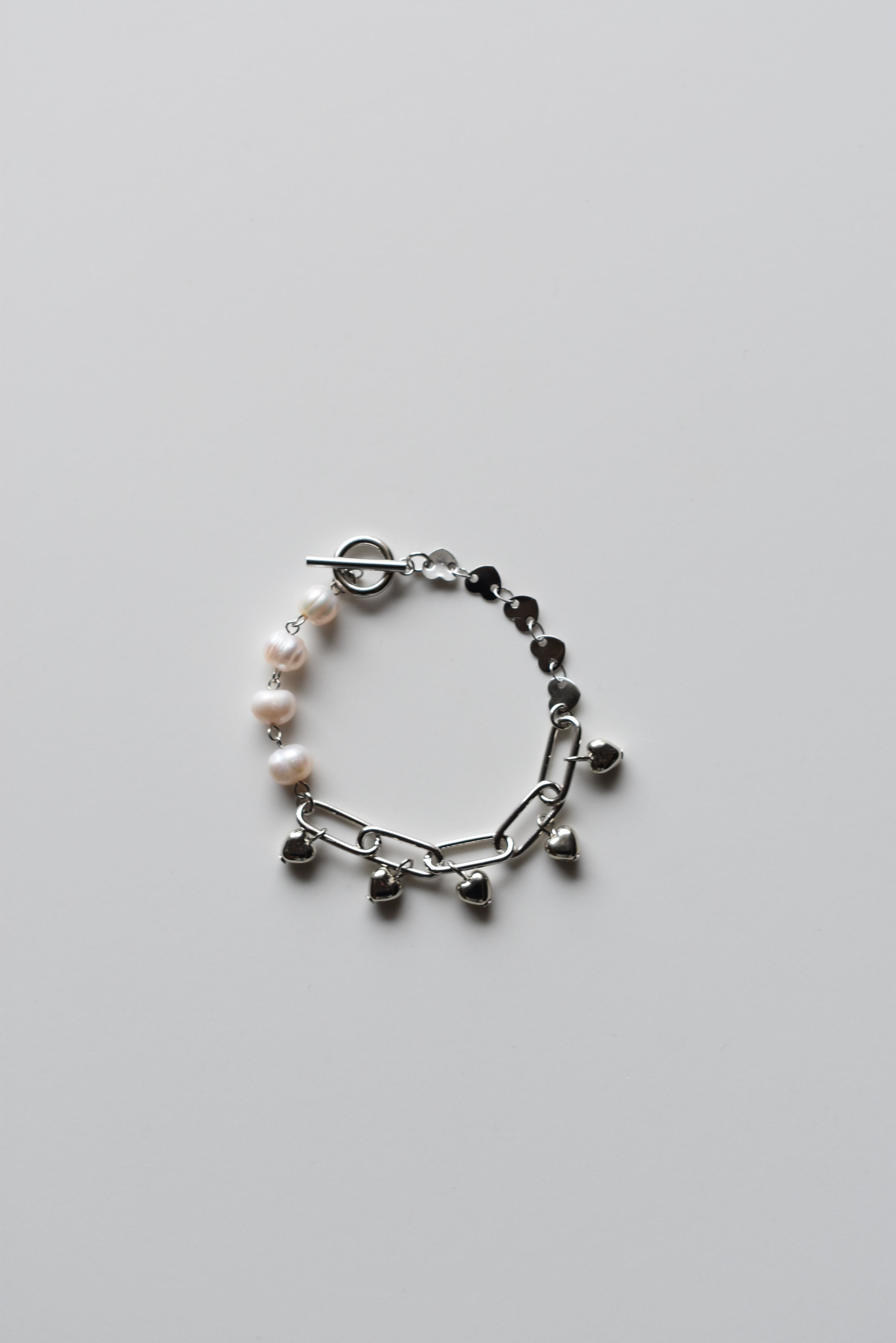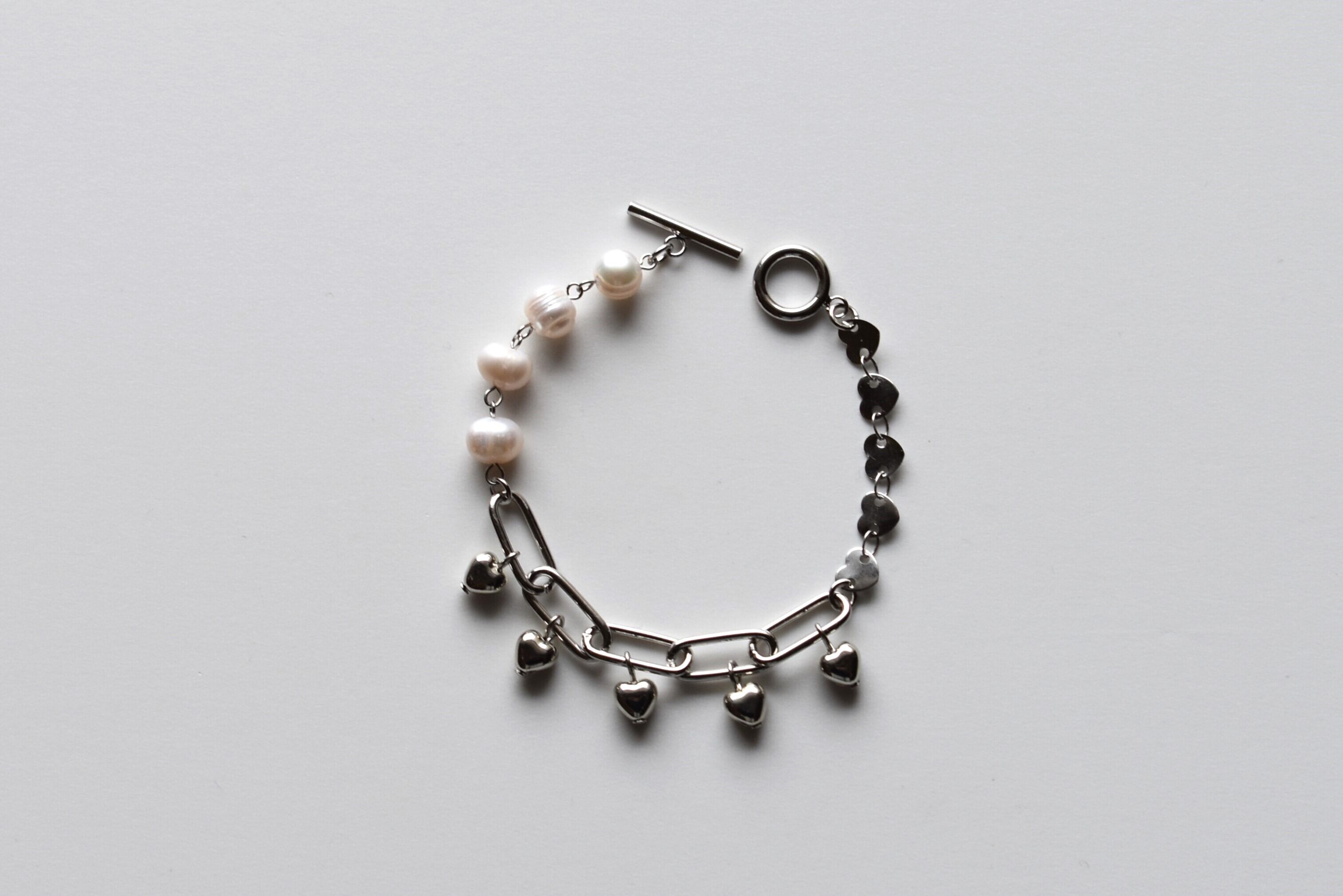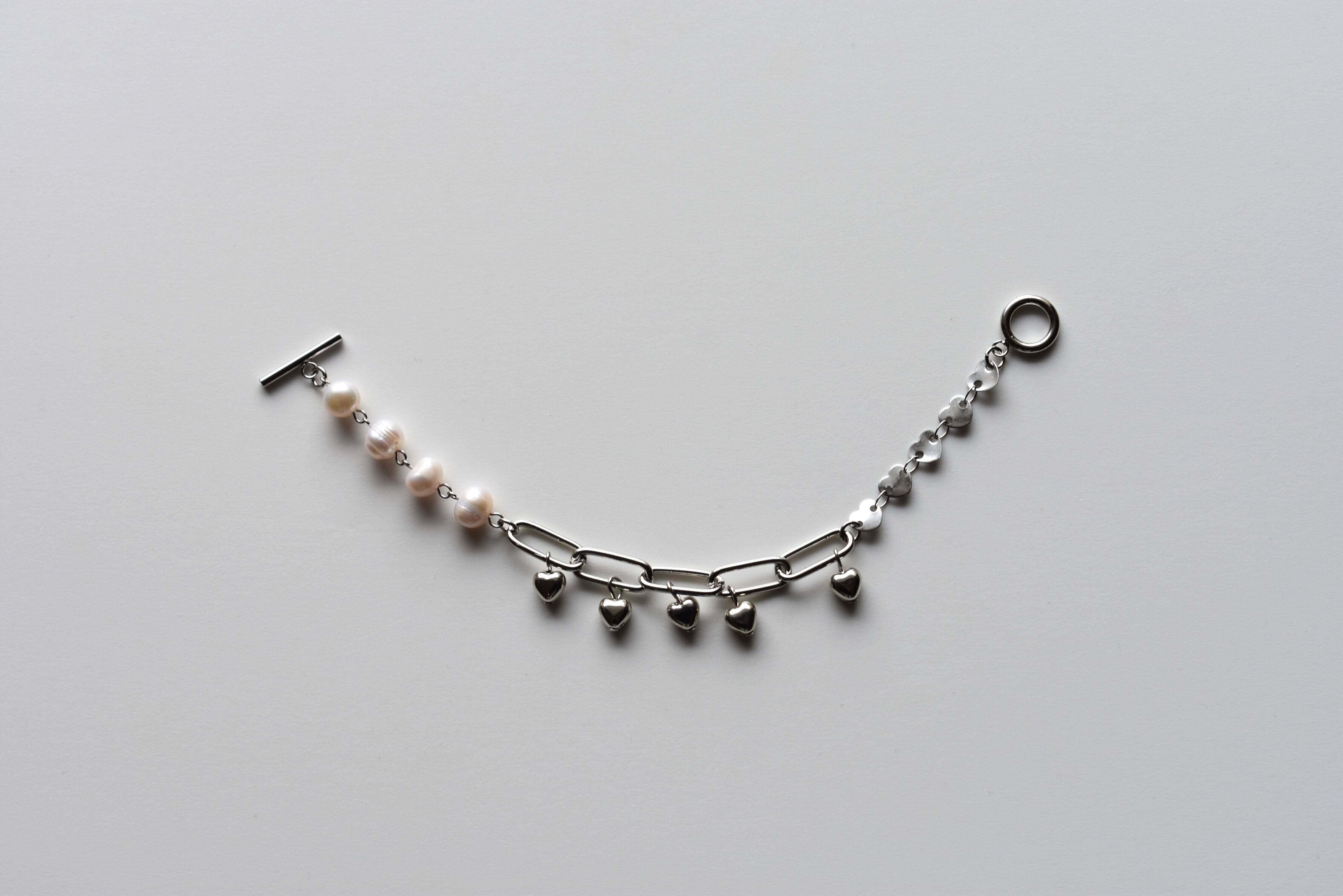 揺れるハートがポイントの、存在感のあるブレスレット。