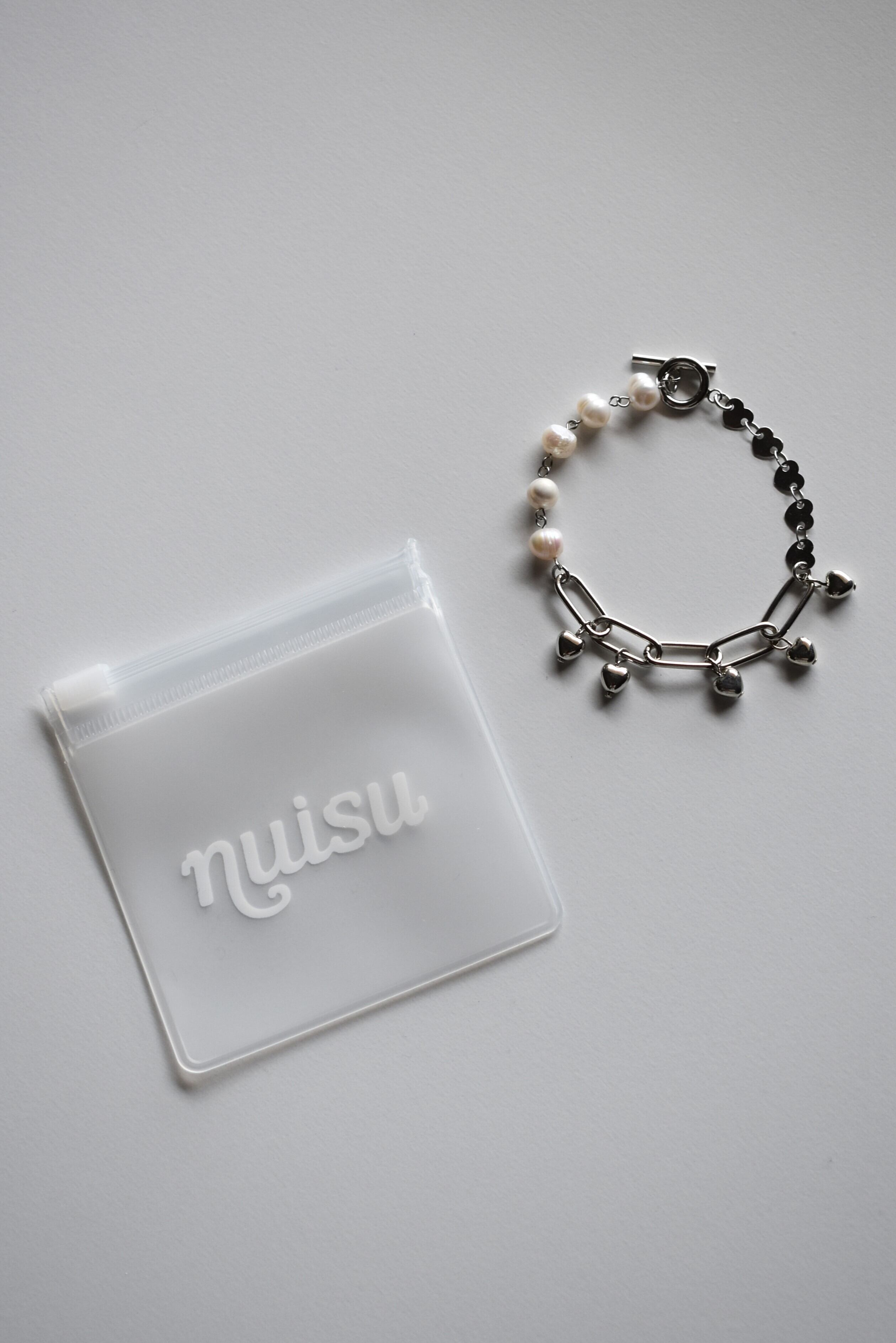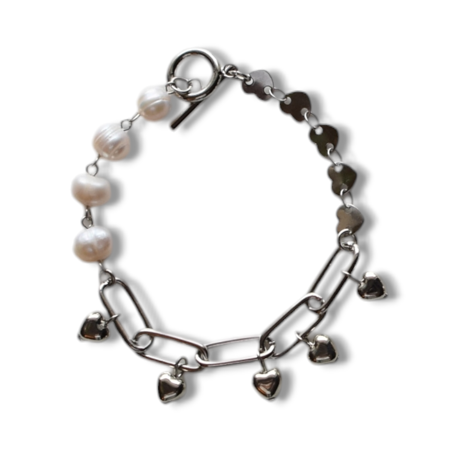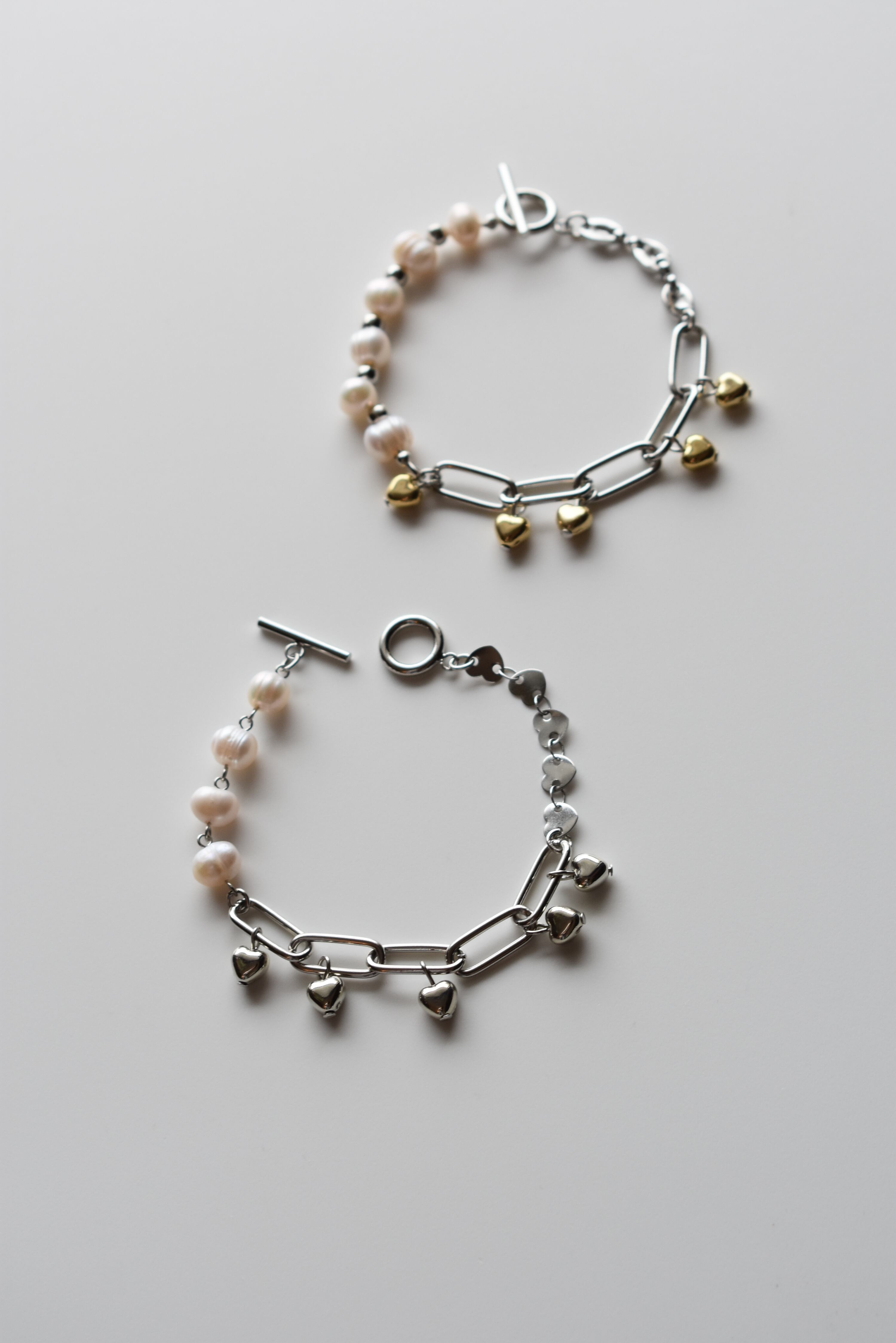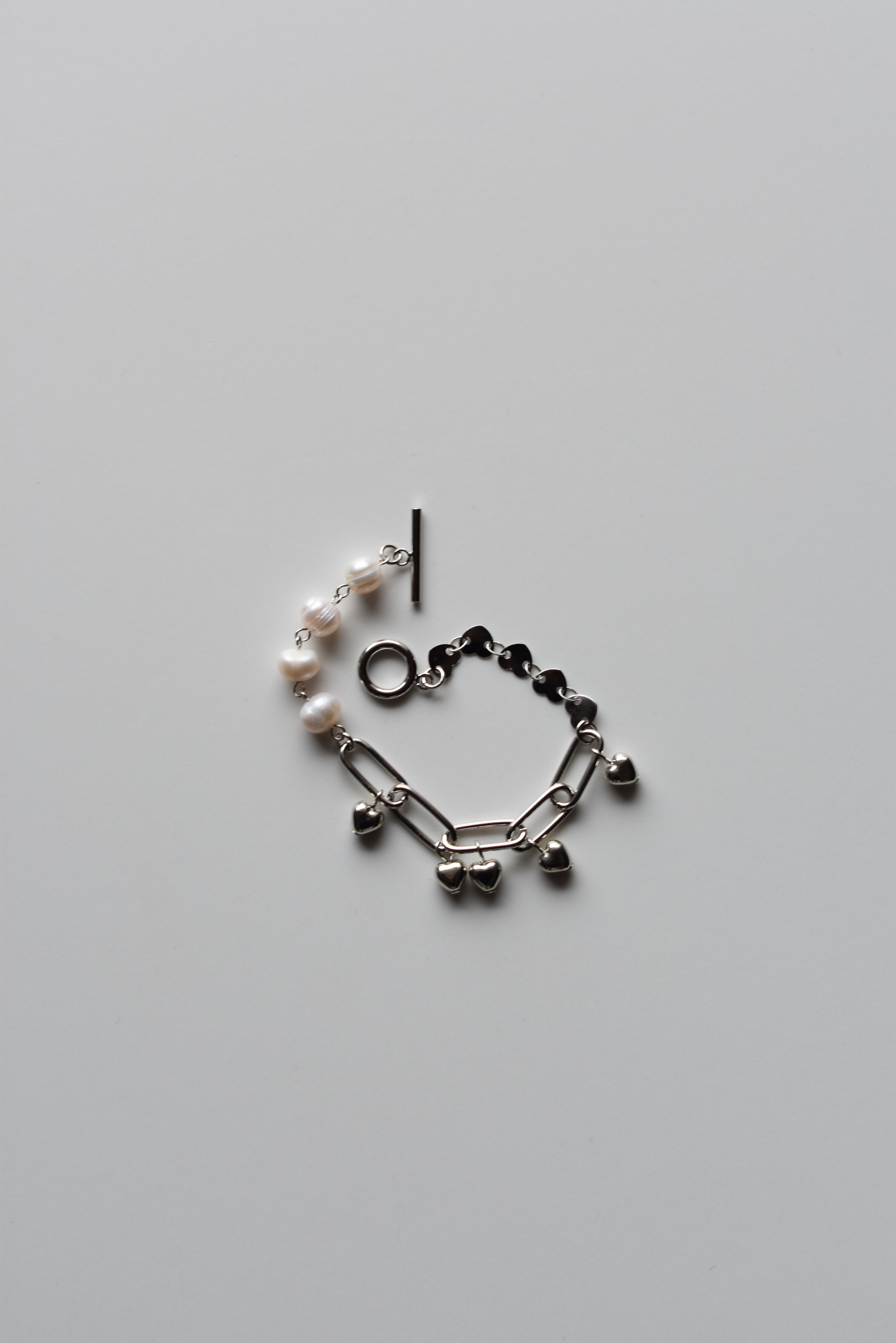 揺れるハートがポイントの、存在感のあるブレスレット。