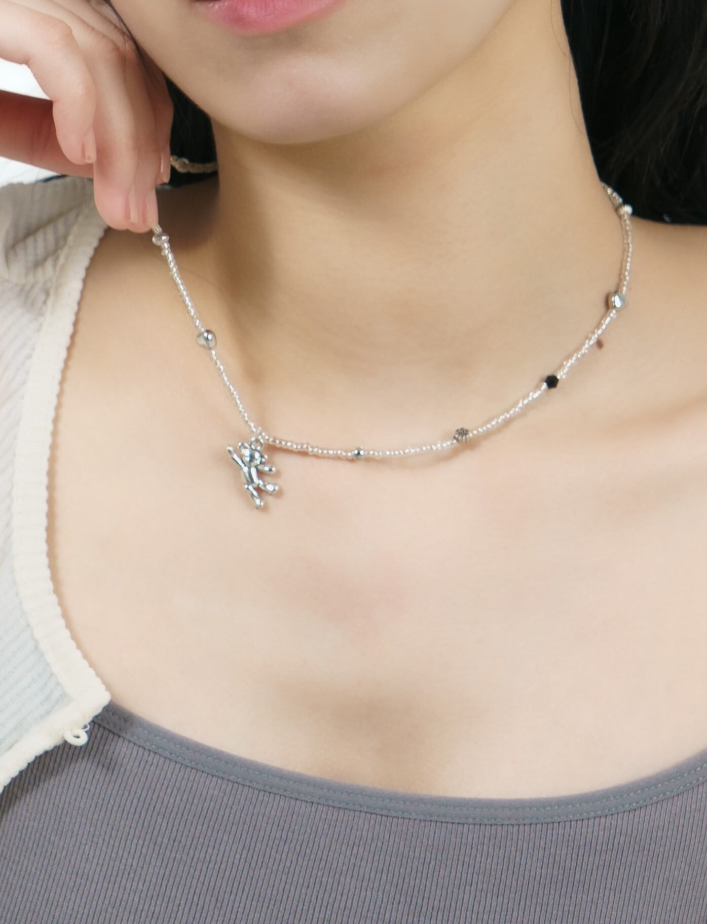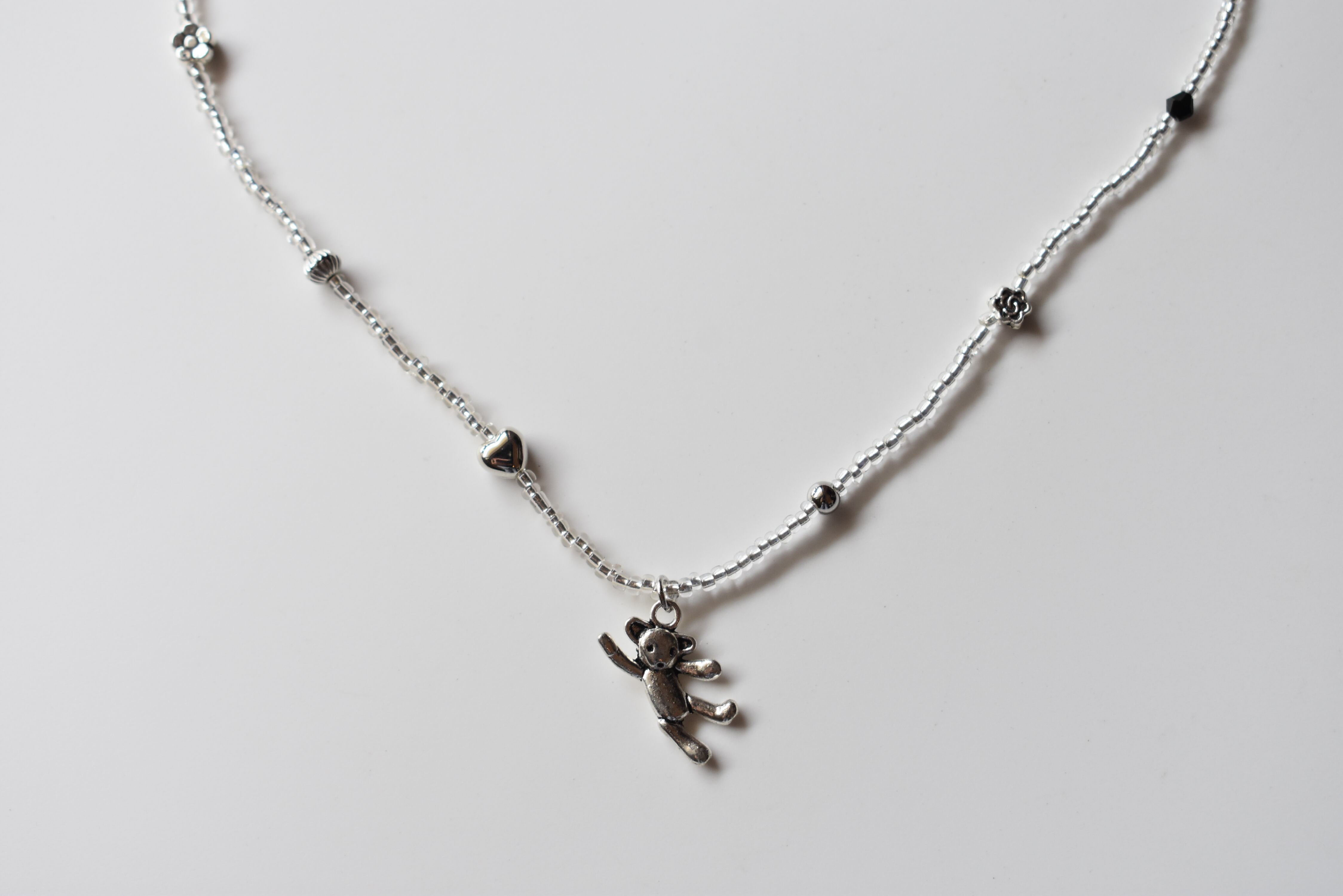 クリアシルバーのビーズをベースにしているので、
