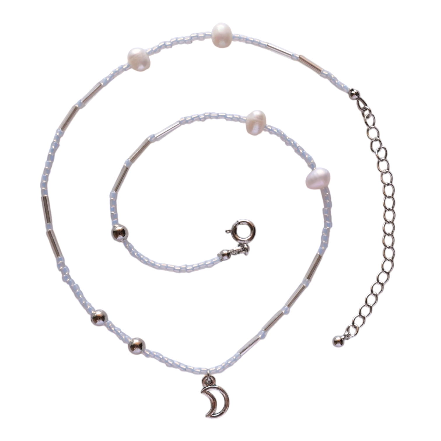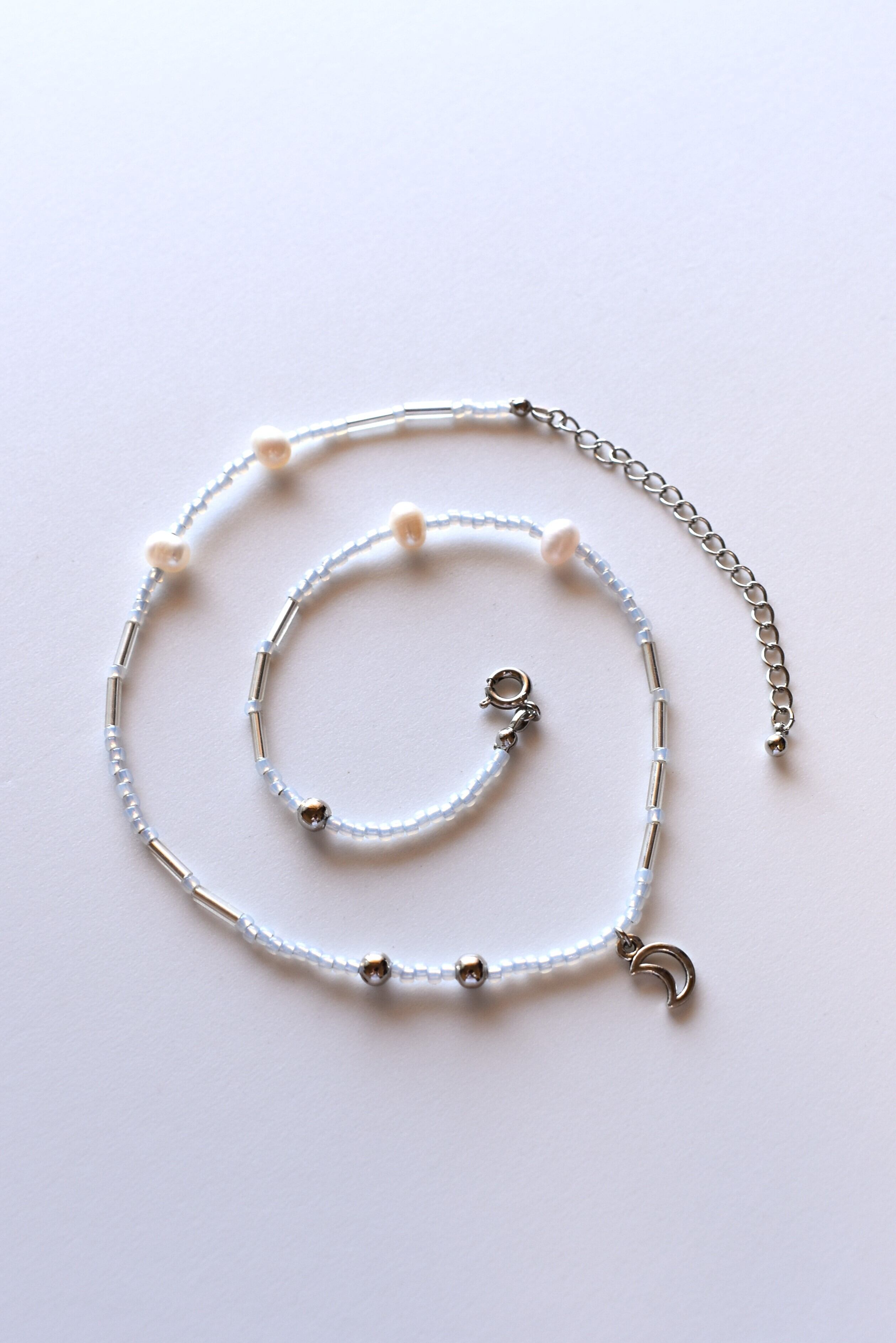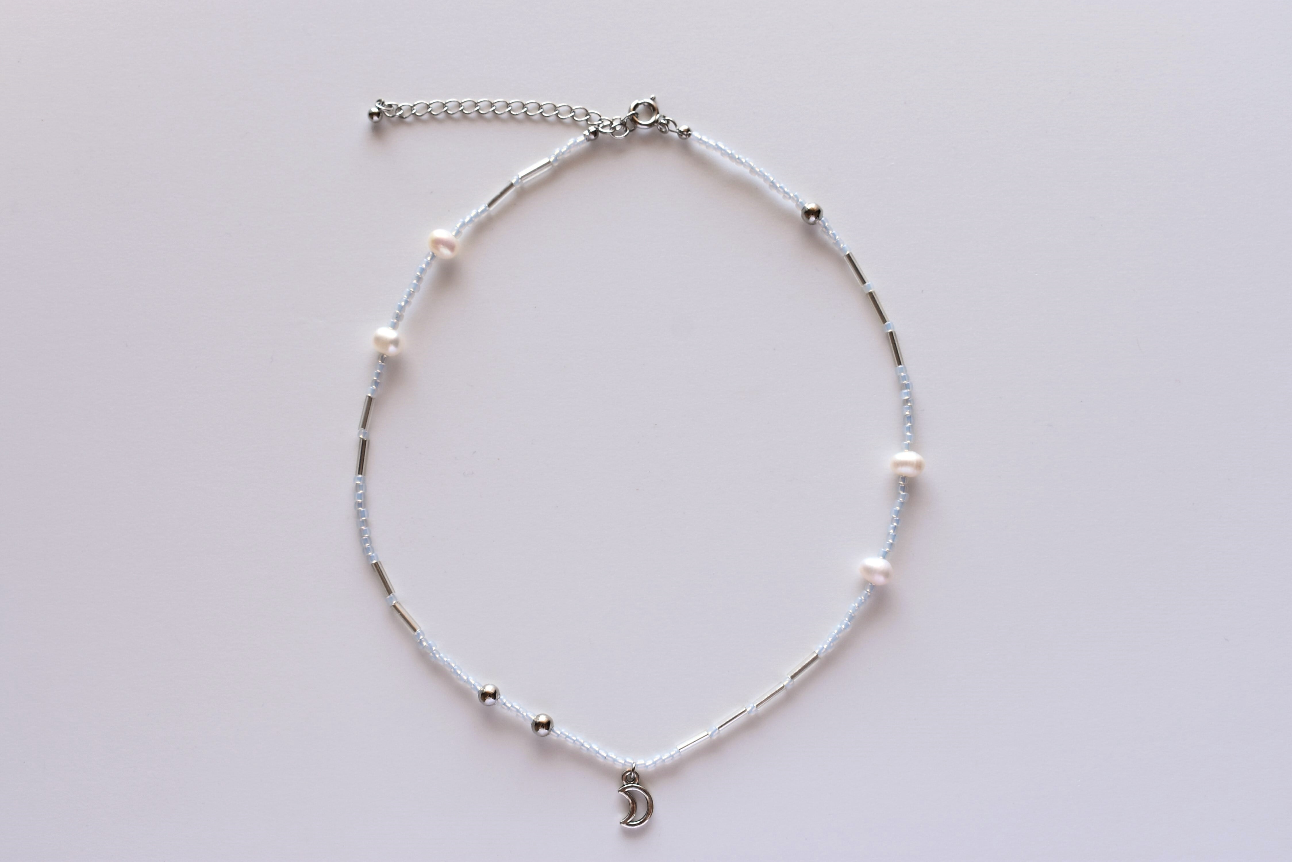 ちいさなお月さまチャームのビーズネックレス。