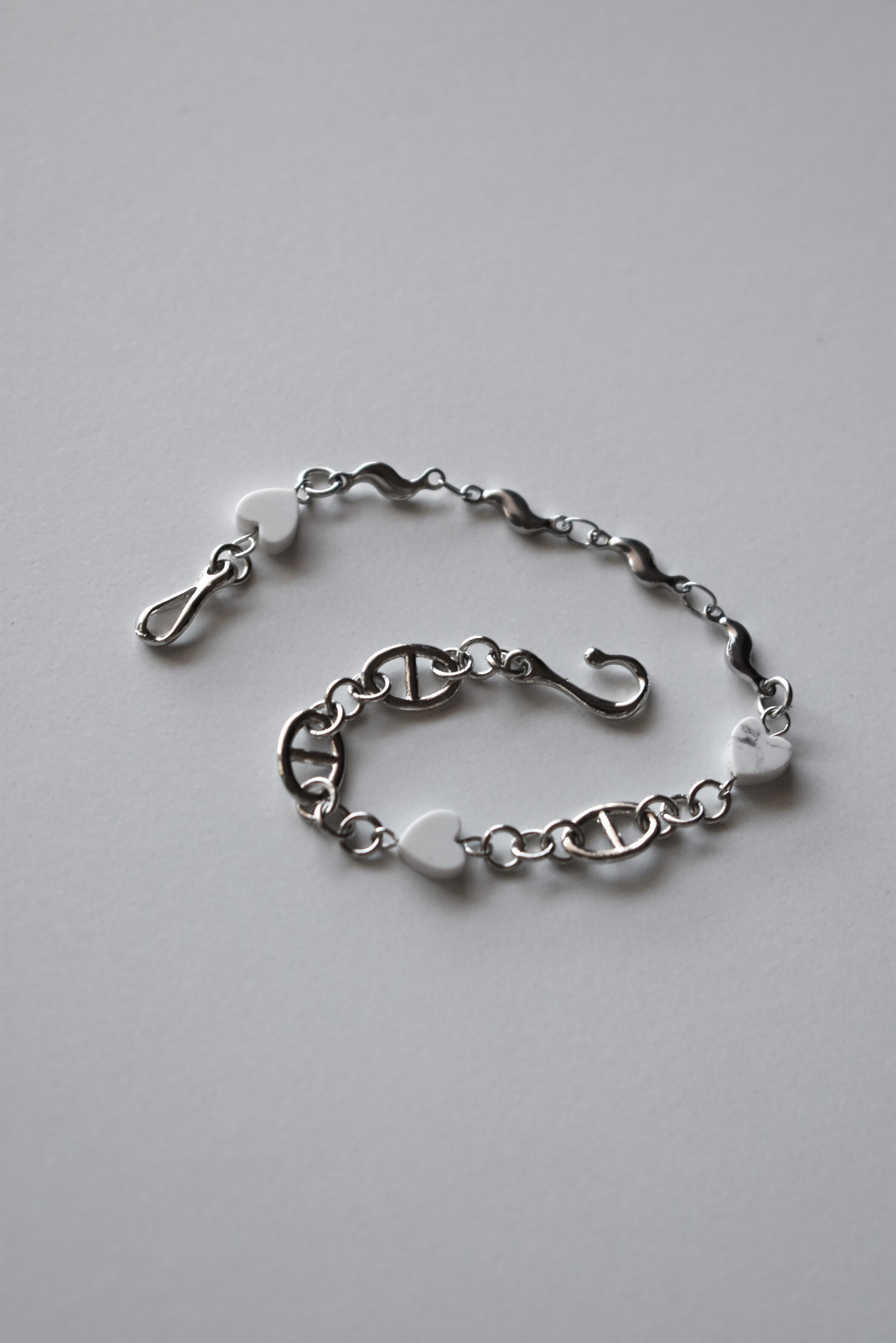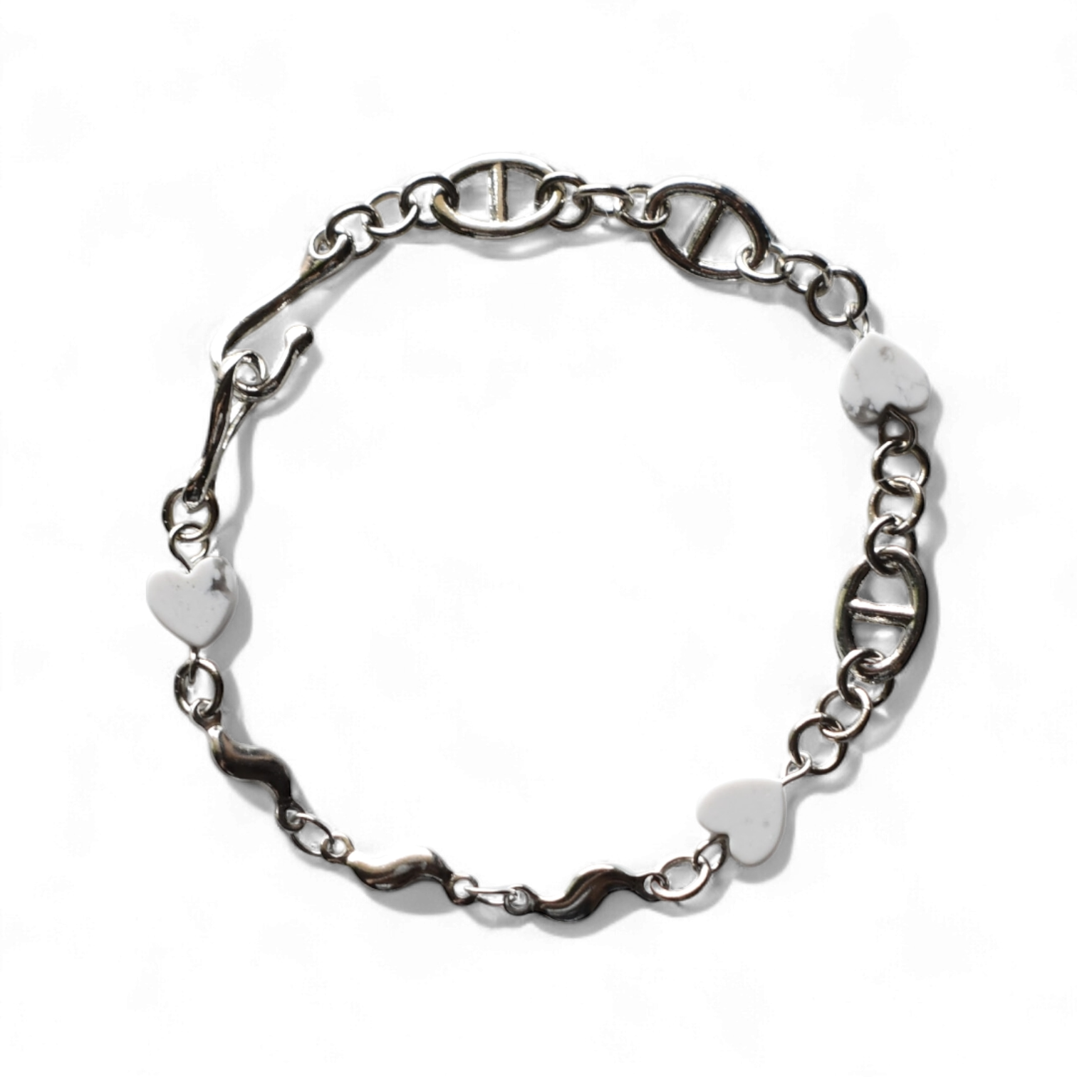 天然石(ハウライト)、ステンレスチェーン、合金、真鍮