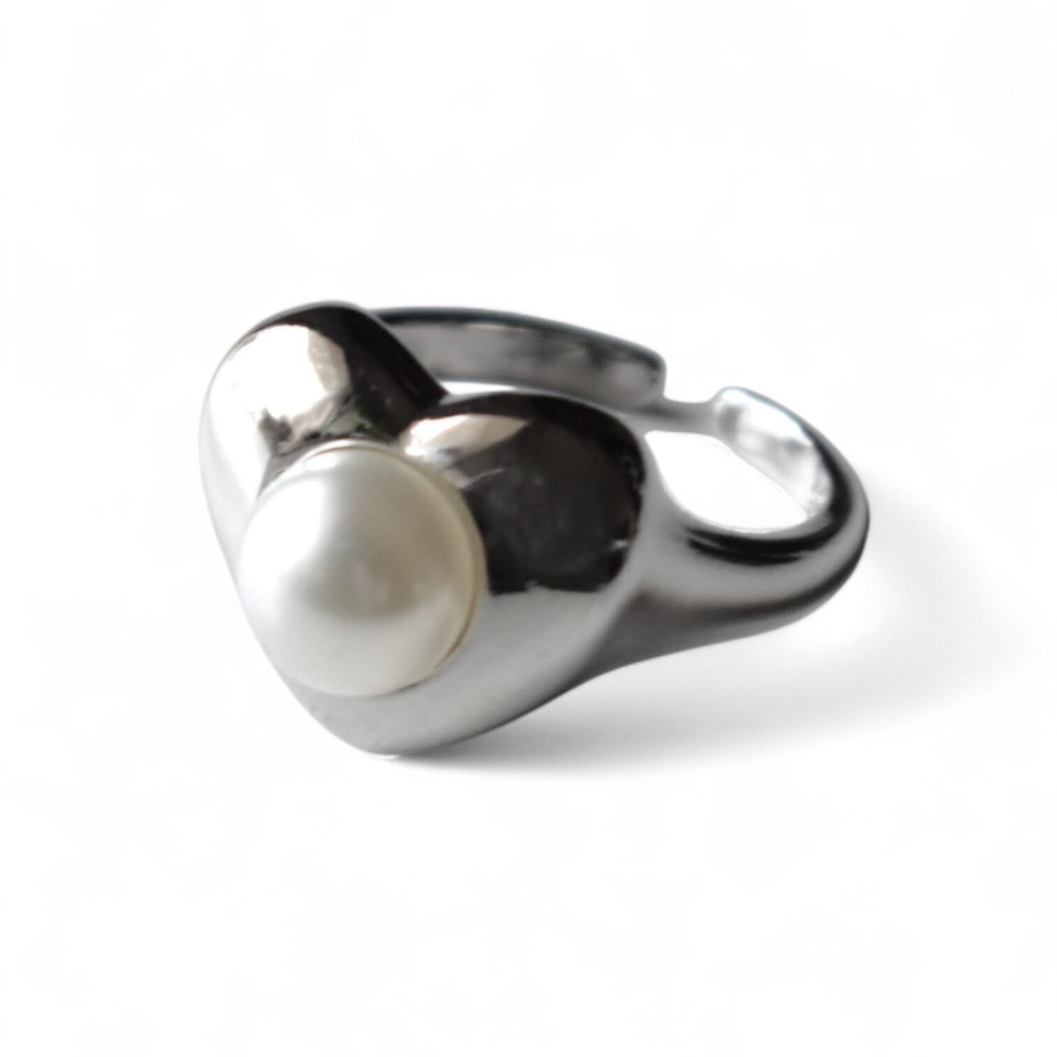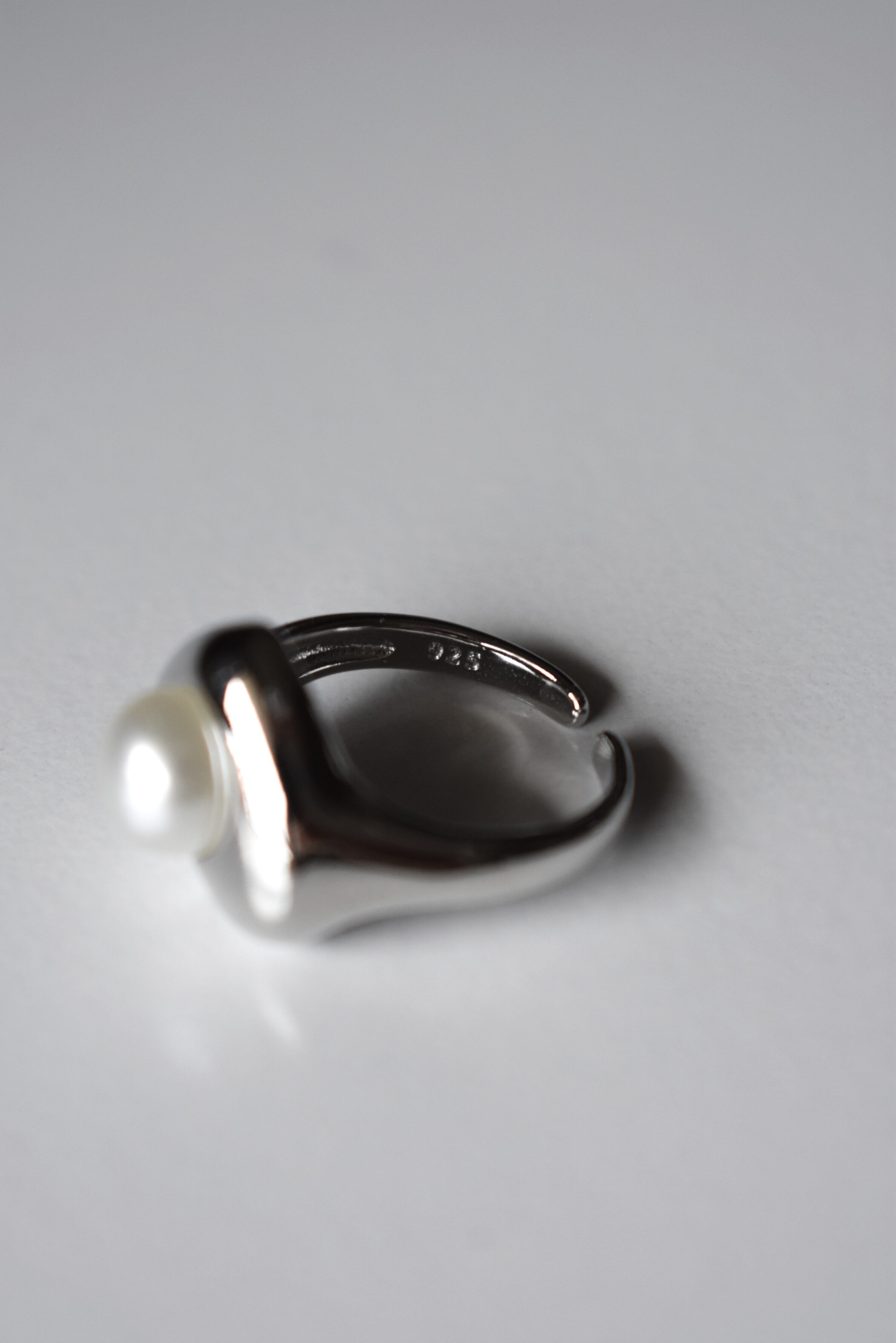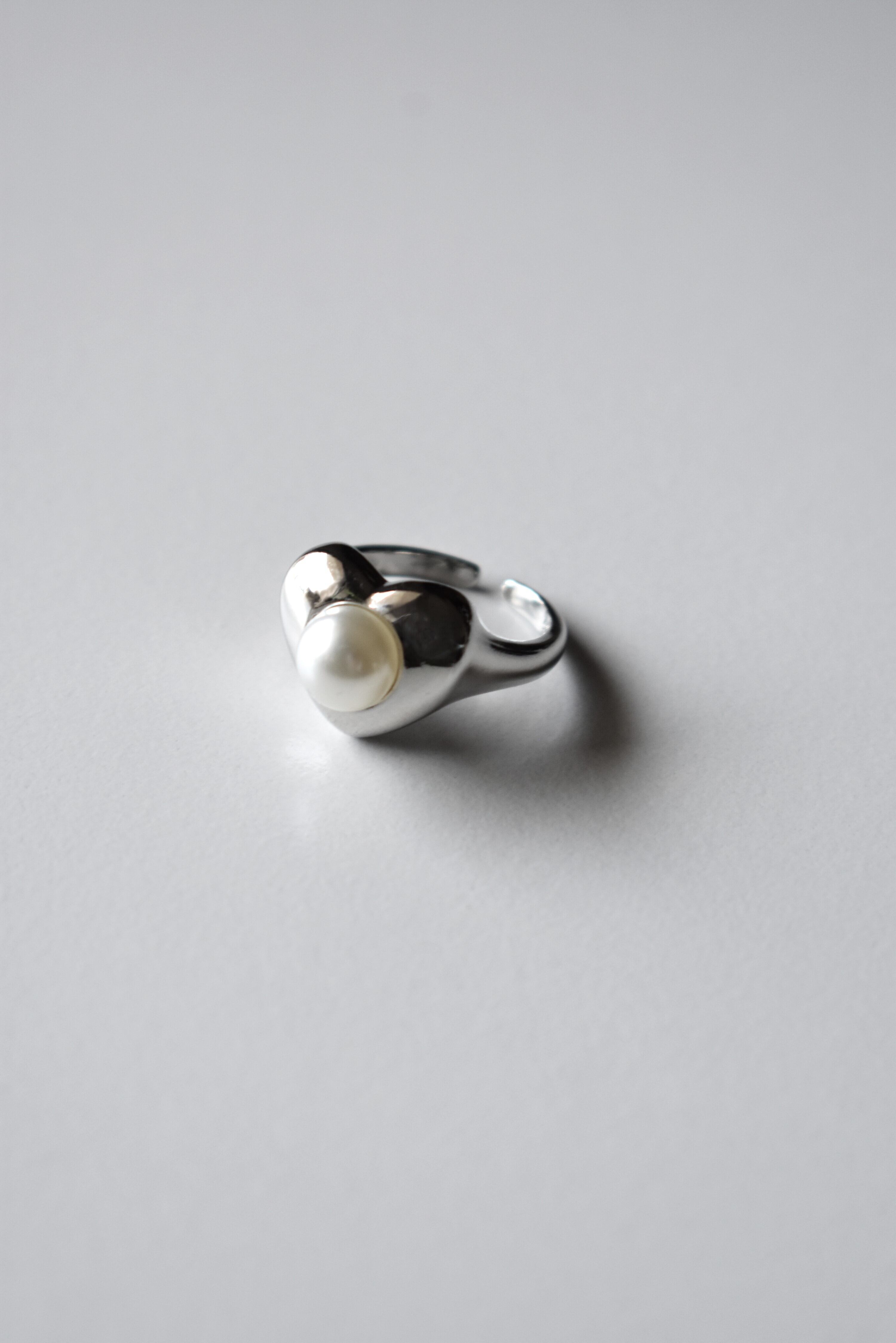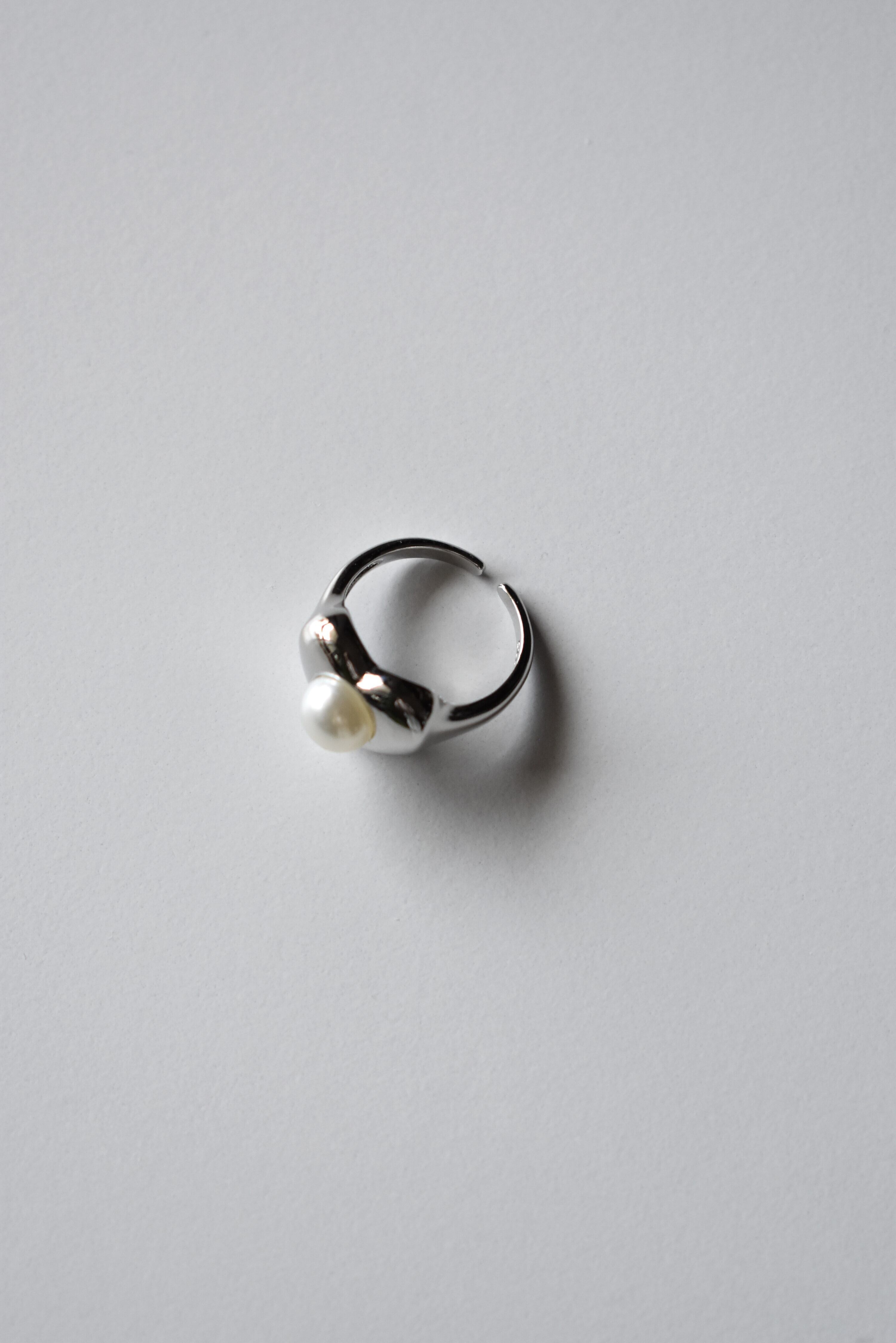 やわらかな表情のパールをたずさえたシルバーリング。