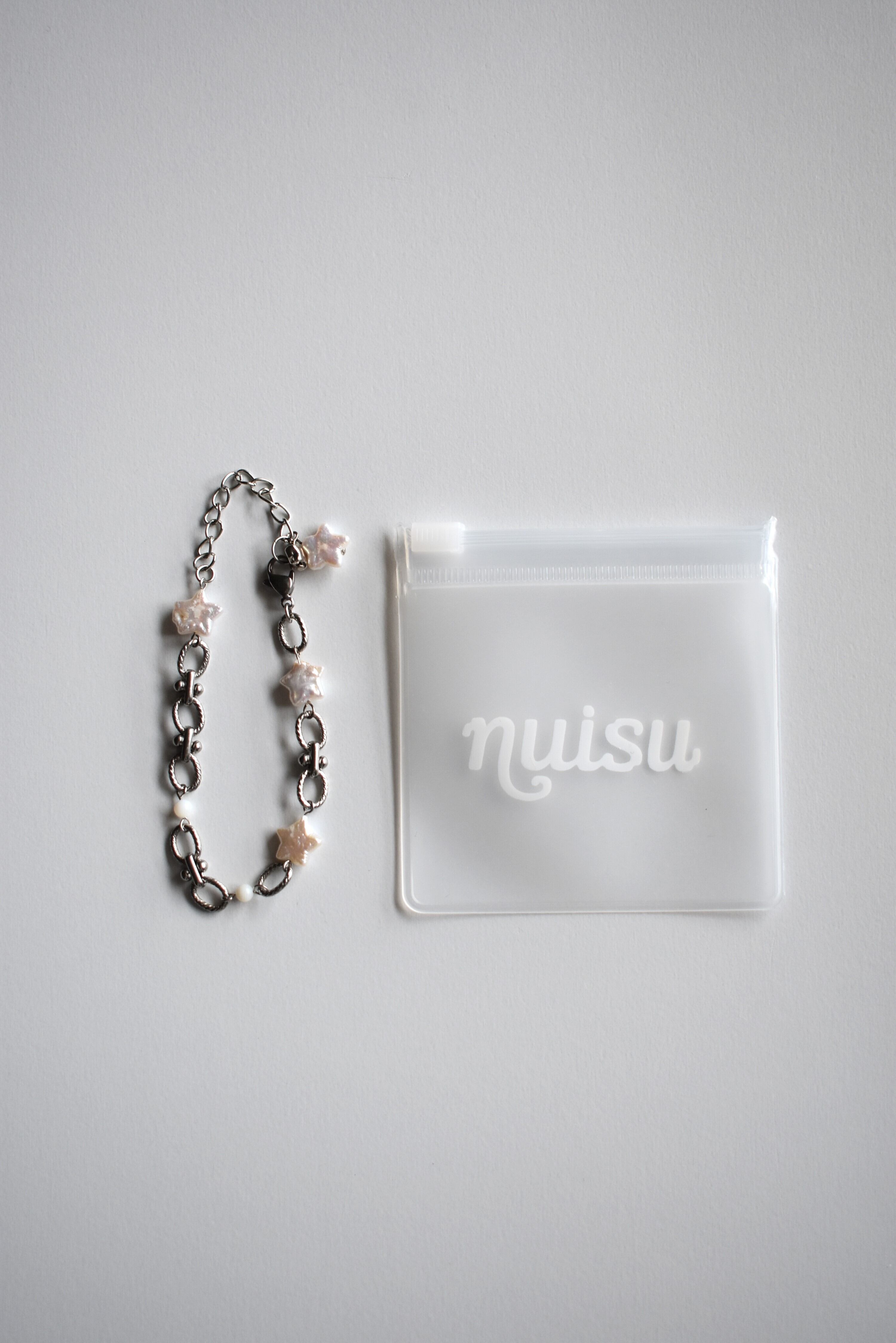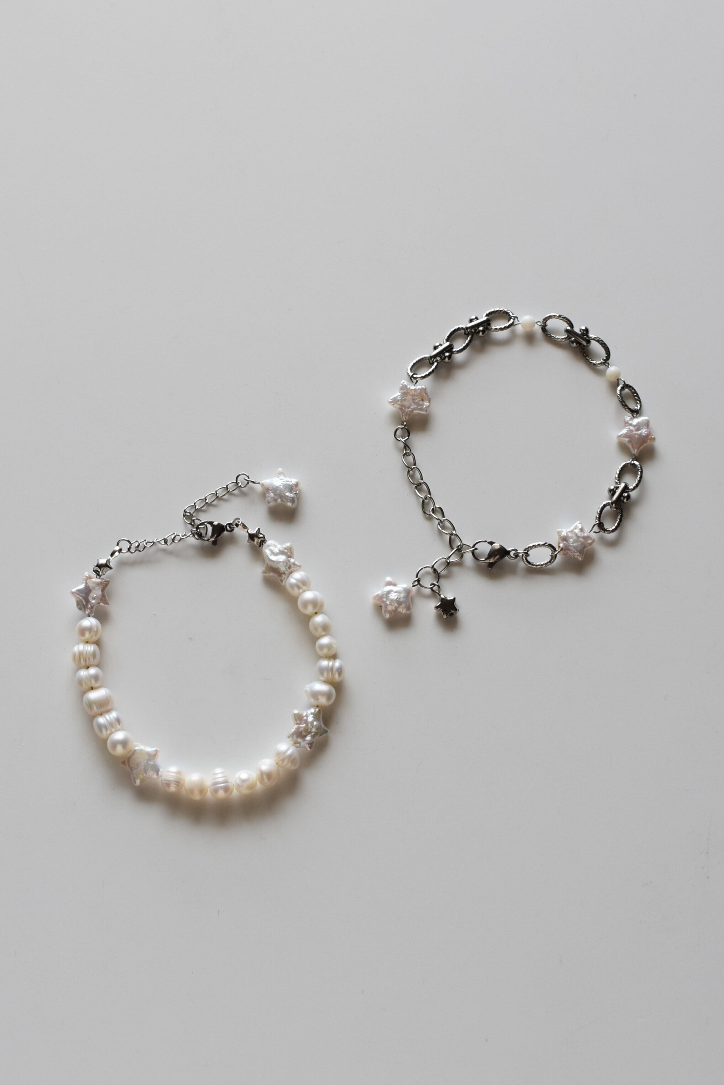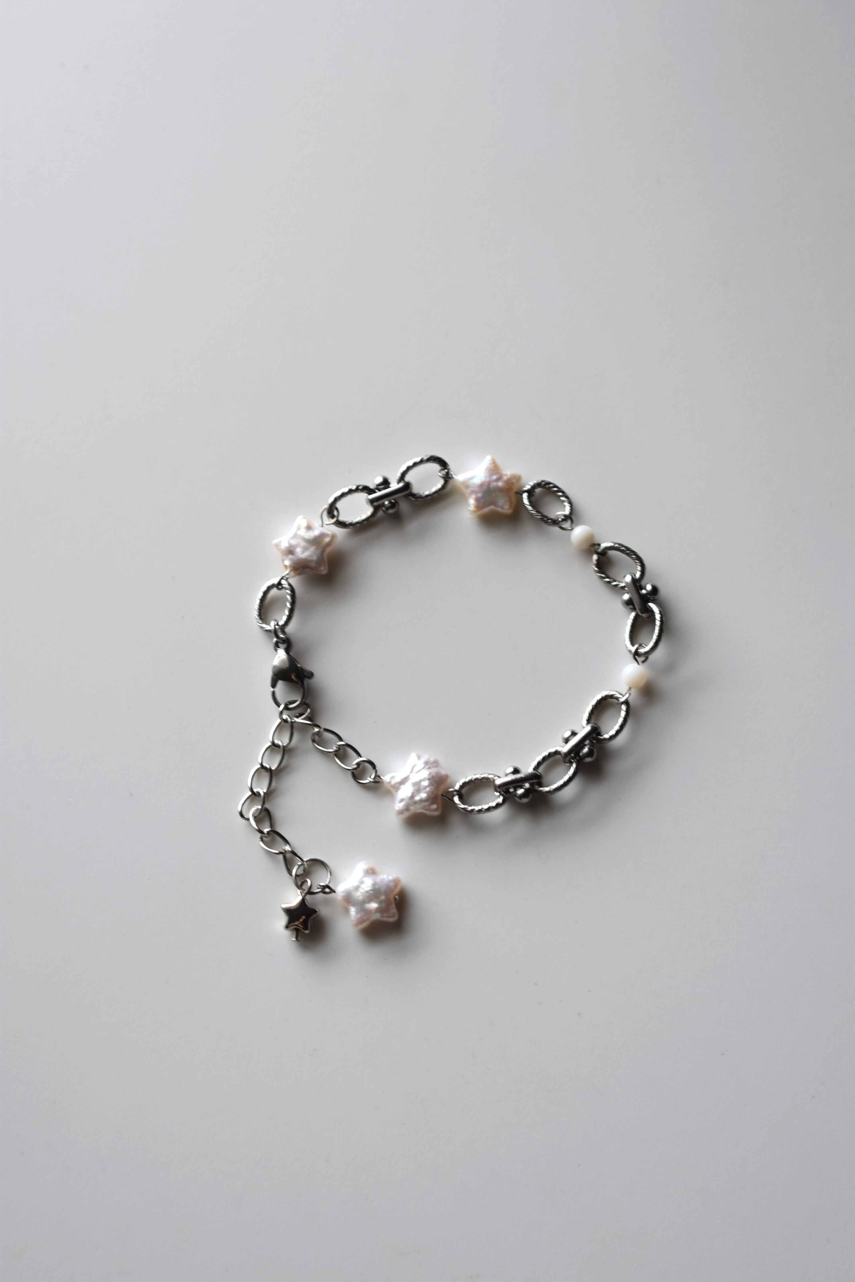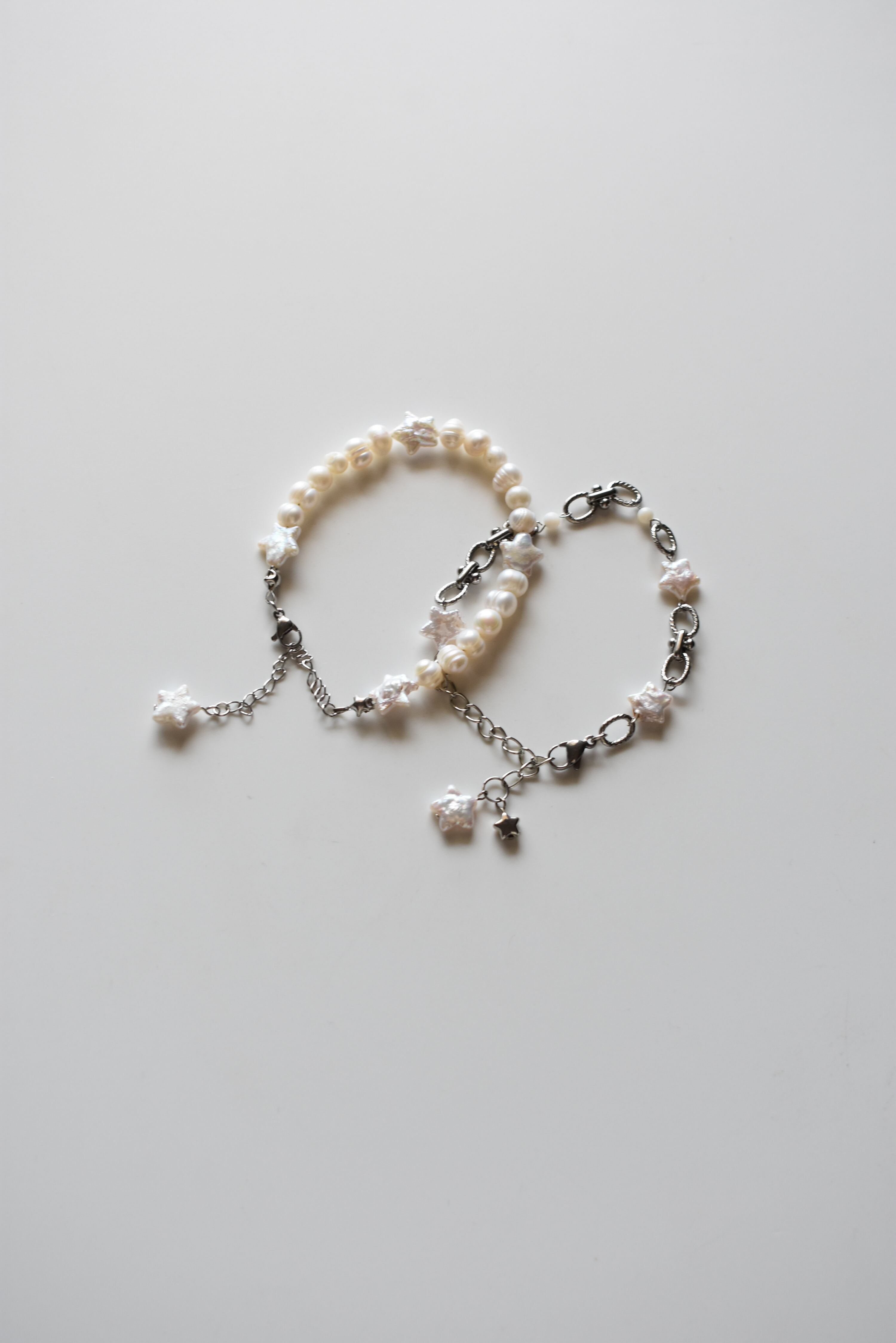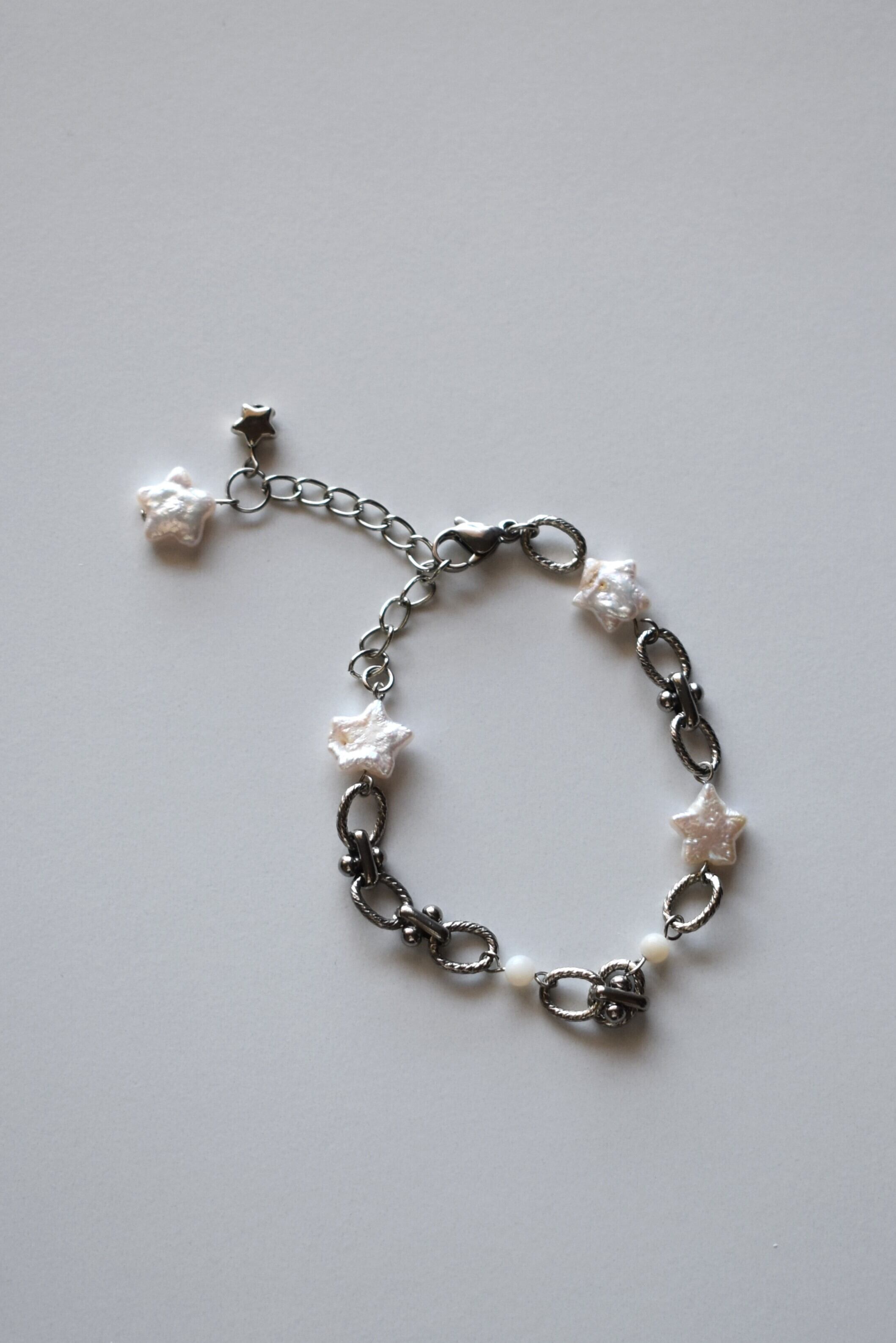 星型の淡水パールとシェルビーズを組み合わせたブレスレットです。