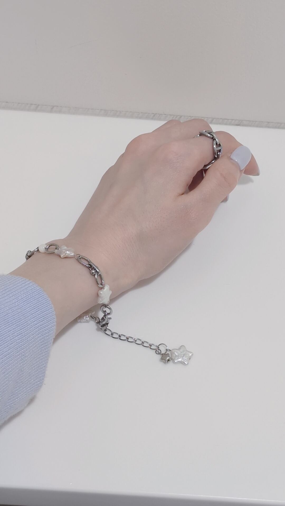 星型パールと小さなシルバーの星をあしらい、