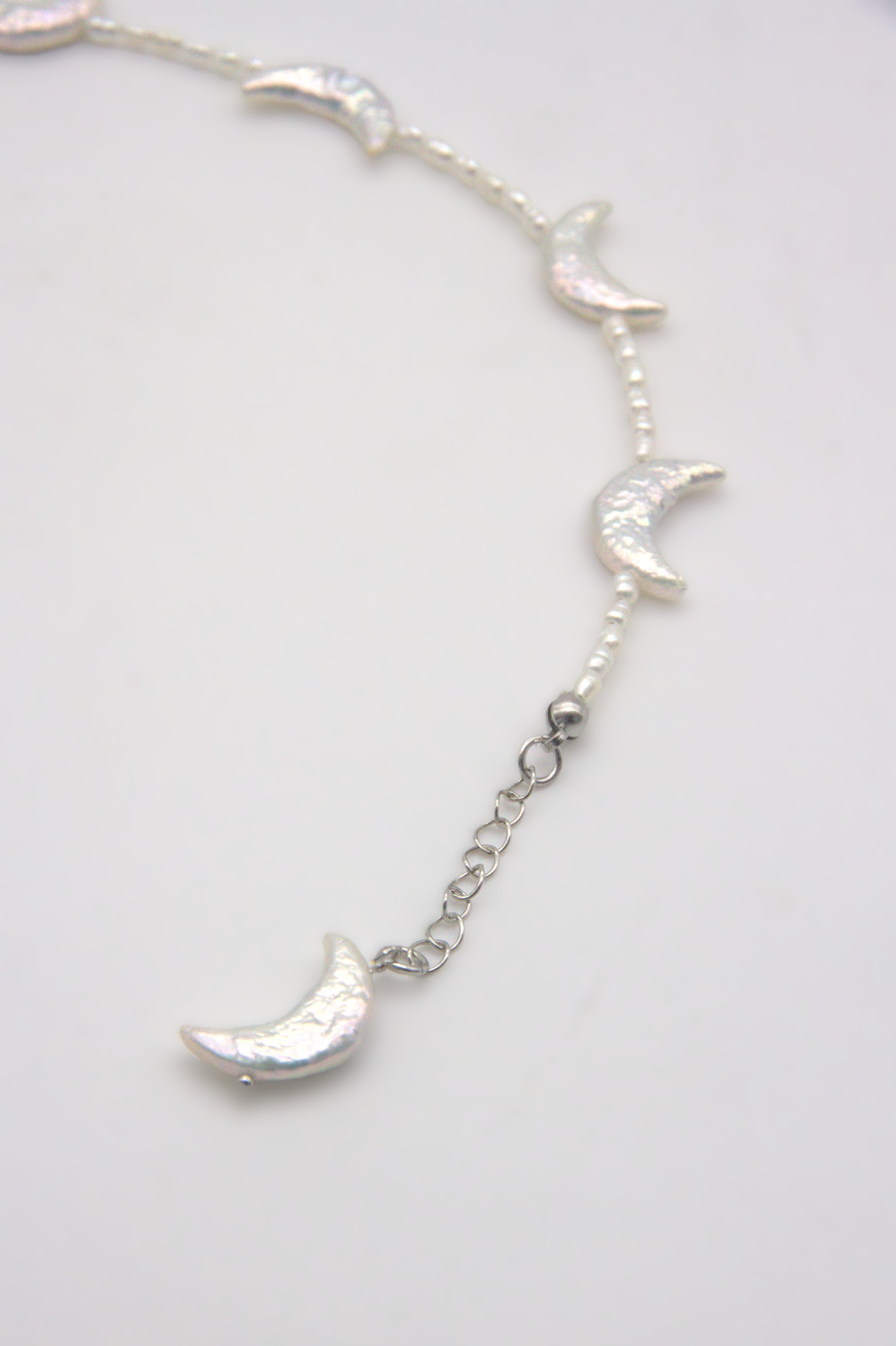 三日月型の淡水パールがつらなり